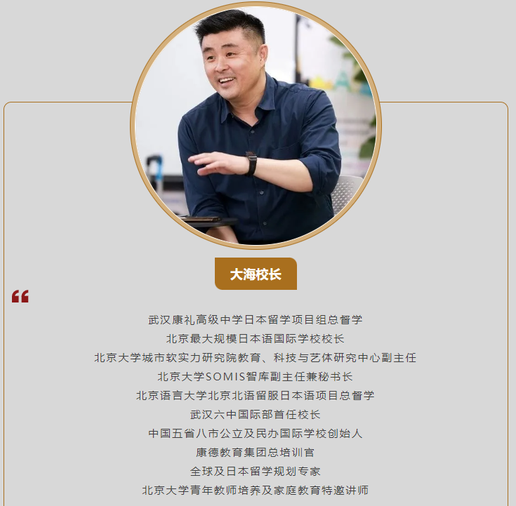 学校特邀北语、北二外的中外籍日本教授专家、邀请北京规模最大的日本语国际高中校长及海归师资团队,全方位支持康礼日本语课程项目。