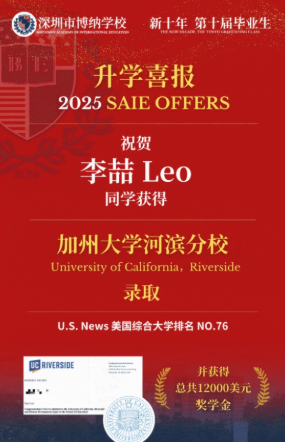 在“教育界奥斯卡”WASC等国际权威认证和加持下,博纳学校的学生深受加州系学校的认可,单个申请季实现“九大名校全满贯”再次创造了新的历史。