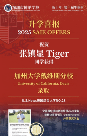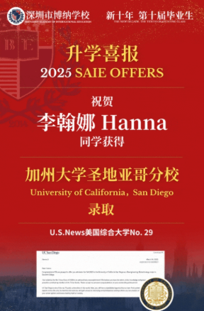 在2025申请季,博纳学校创造单个申请季“加州九大名校”全满贯的历史,这在亚洲顶尖国际学校中,这也是极为罕见的壮举。其中包括,全美公立大学排名第一的加州大学洛杉矶分校、公立大学排名第二的加州大学伯克利分校以及3封全美排名29的加州大学圣地亚哥分校录取,共收获20枚加州系名校Offer。