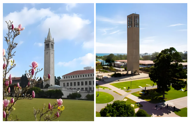 ▲加州大学伯克利分校(左)加州大学圣巴巴拉分校(右)